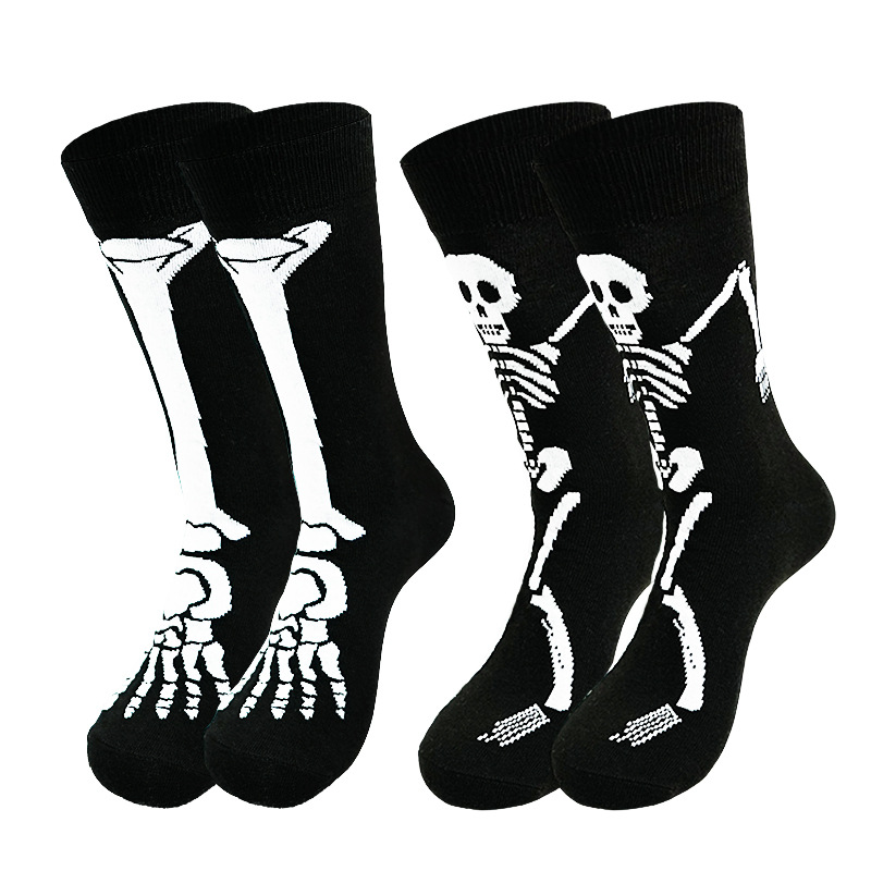 国境を越えた貿易ハロウィンスカルゴースト爪漫画プリントカジュアルソックス男性と女性のための吸汗性秋と冬のミッドカーフソックス楽しいソックス