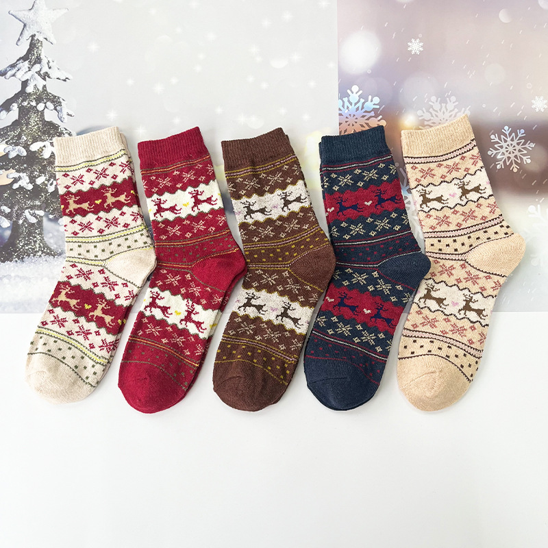国境を越えた貿易秋と冬のクリスマスソックスサンタクロースギフトスノーフレークヘラジカかわいい漫画クリスマスミッドチューブソックス