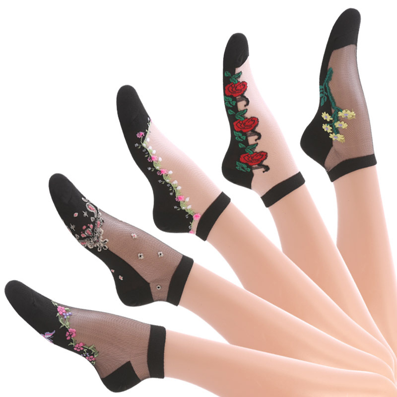 欧米の爆発物の女性の中筒の水晶のストッキングの春夏の薄い金の刺繍のガラスの糸の女性の靴下の中高年の滑り止めの靴下