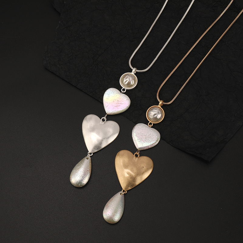 国境を越えたアマゾンの起爆ネックレス欧米のレトロなロングネックレス桃心ペンダント金属女性セーターチェーン卸売り