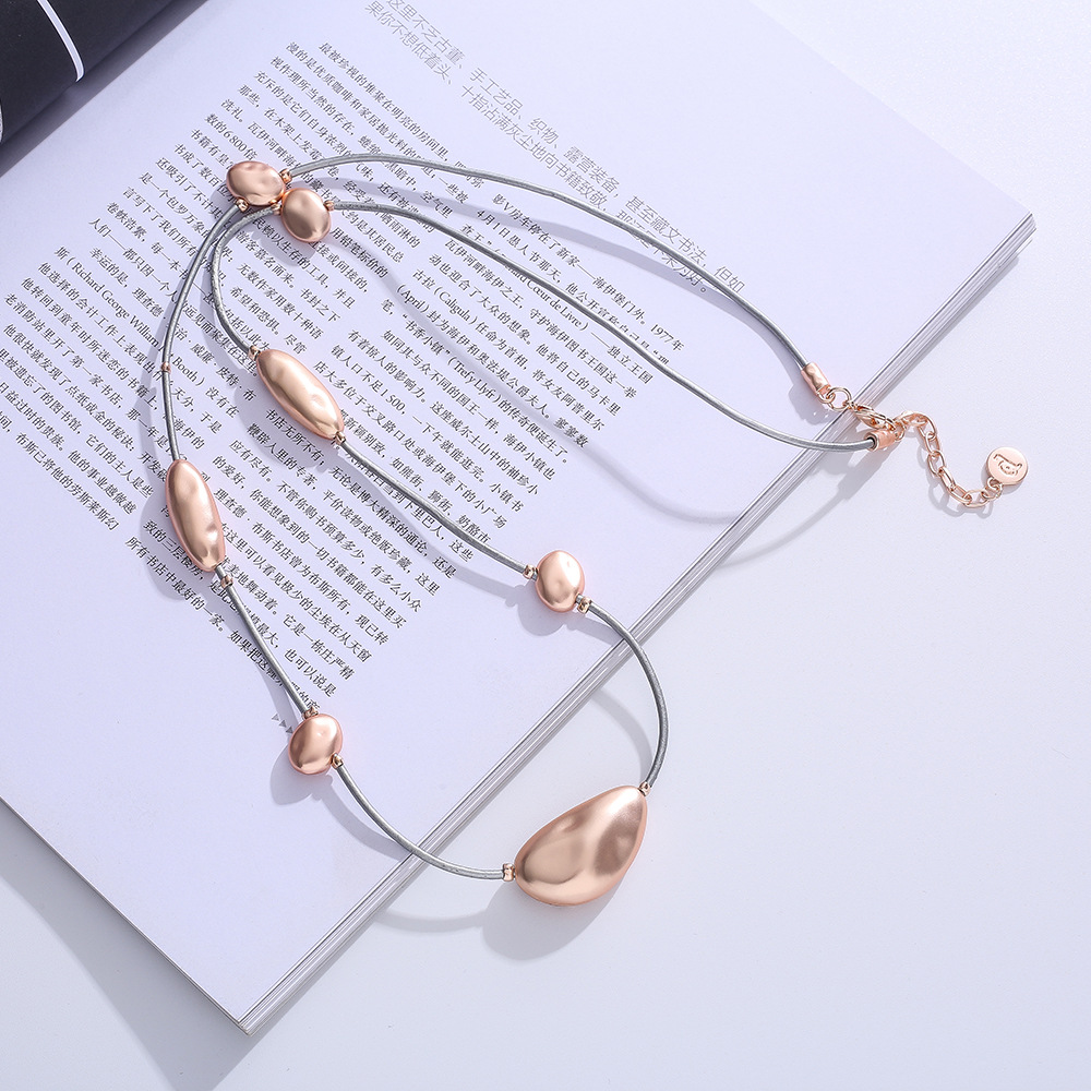 アマゾンの国境を越えたファッションが人気の革紐の長いネックレス欧米の大気女性の金属ネックレス卸売り
