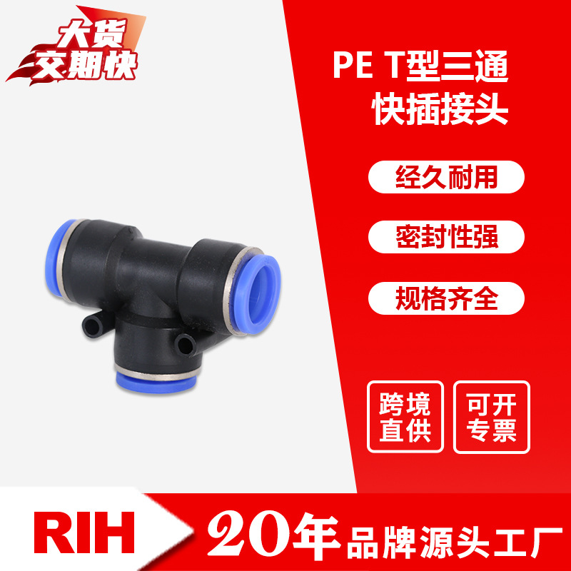Rih瑞亨pe t型三方ブルークイックプラグ継手気管クイックプラグ漏れ防止三方t型プラスチック継手