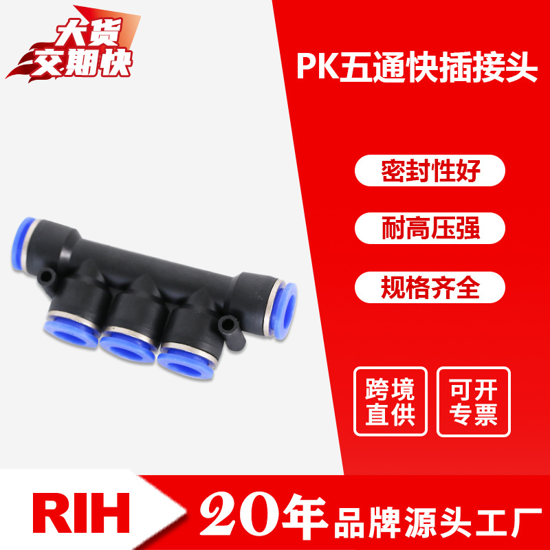 Rih瑞亨pk五通ワンタッチ継手プラスチックブルー気動高速ガス管継手多管多通路ガス列