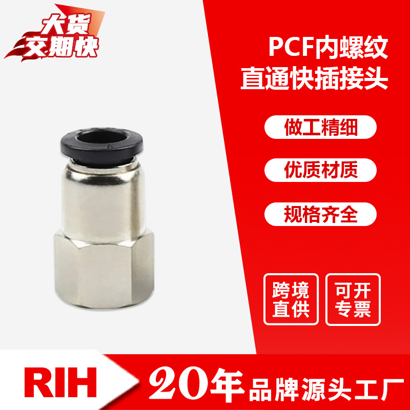 Rih瑞亨pcfめねじストレートクイック継手銅 + ニッケルメッキホースエア気管クイック継手部品