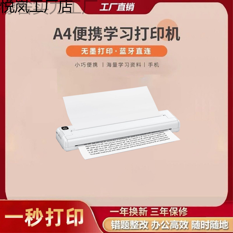 HD A4 プリンタポータブル小型モバイルオフィス家庭用学生テスト用紙間違い問題サーマルインクレスプリンタ