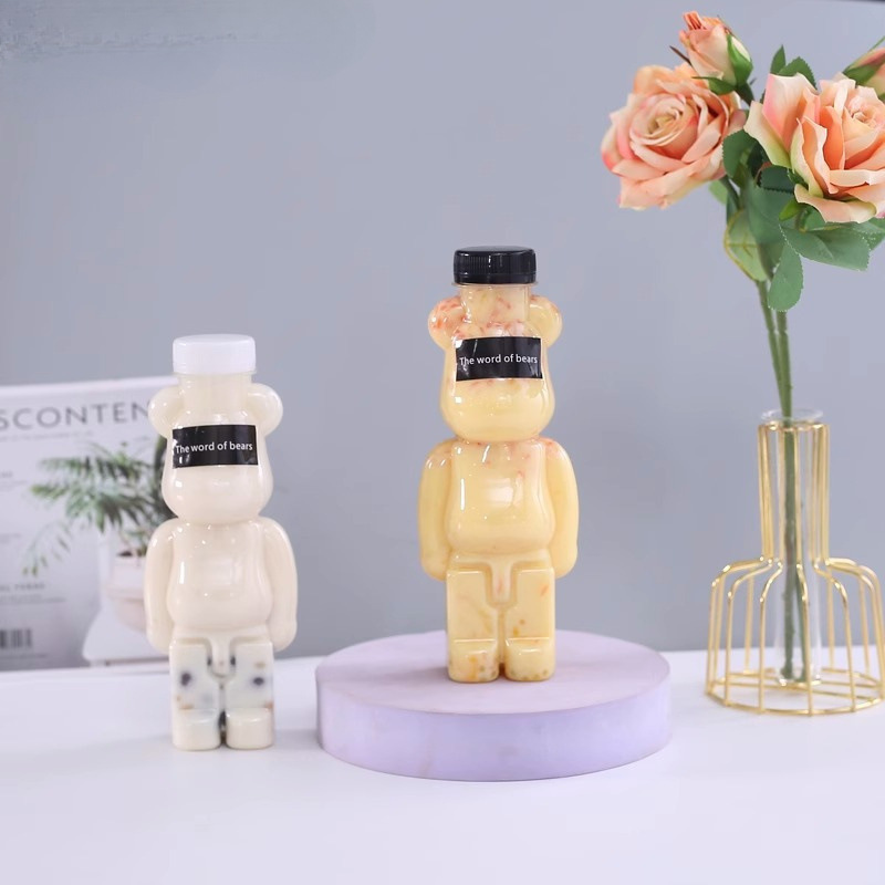 M バイオレントベアミルクティーカップ使い捨てクマ飲料ボトル商業漫画プラスチックフルーツオレンジジュース屋台 L