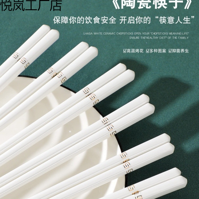 景徳鎮家庭用箸、滑り止め、高温耐性、防カビセラミック、お手入れ簡単、高級ボーンチャイナ、環境に優しい、食品グレード