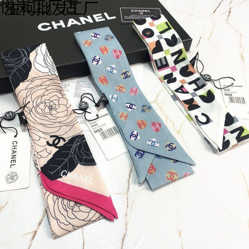 小さなシルクスカーフ花柄ヘアバンド黒と白のファッションバッグストラップストリーマー新しいスタイルの小さな香りプリント椿ローズ
