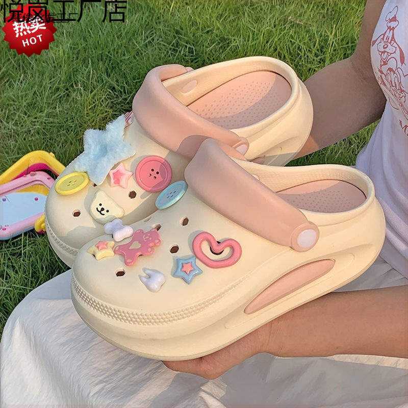 ドーパミン厚底下駄女性の夏アウターインターネットセレブ滑り止め高さ増加ビーチサンダル包頭ハーフスリッパスイング