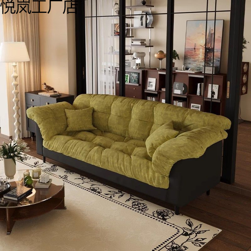 ファブリックソファリビングルームレトロ新しい小さなアパートモダンシンプルダブルレンタルルーム寝室ストレートレイジーソファ