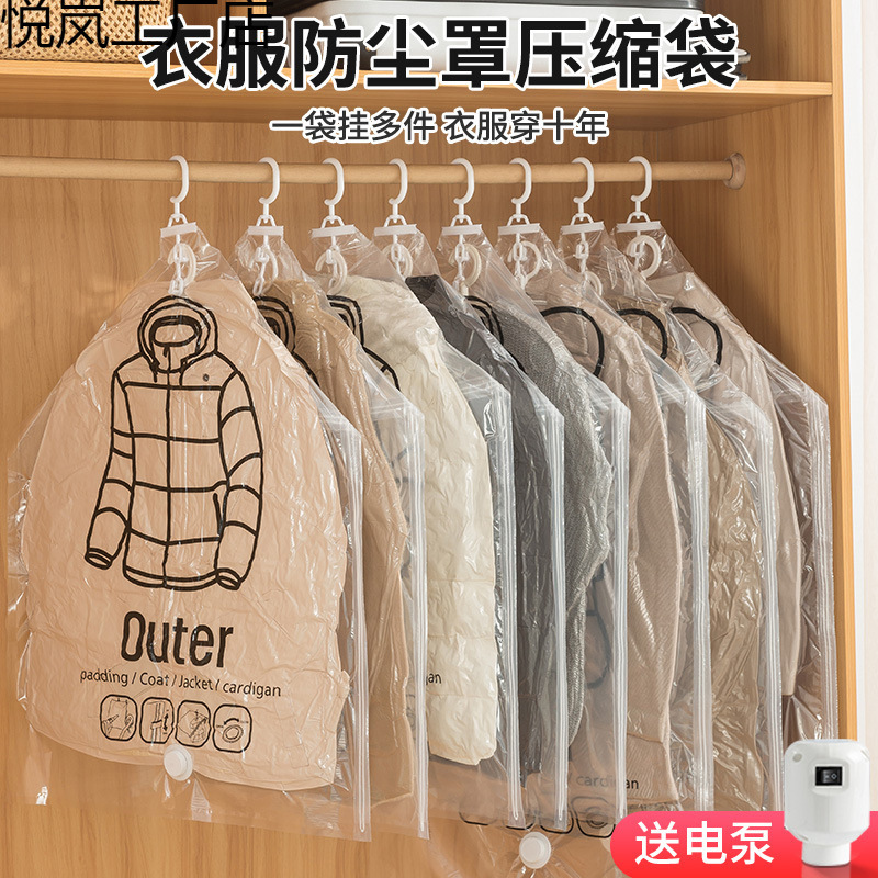 衣類ダストカバー、家庭用コート、スーツ吊り下げバッグ、ワードローブ吊り下げ透明圧縮バッグ、ダウンジャケット収納バッグ