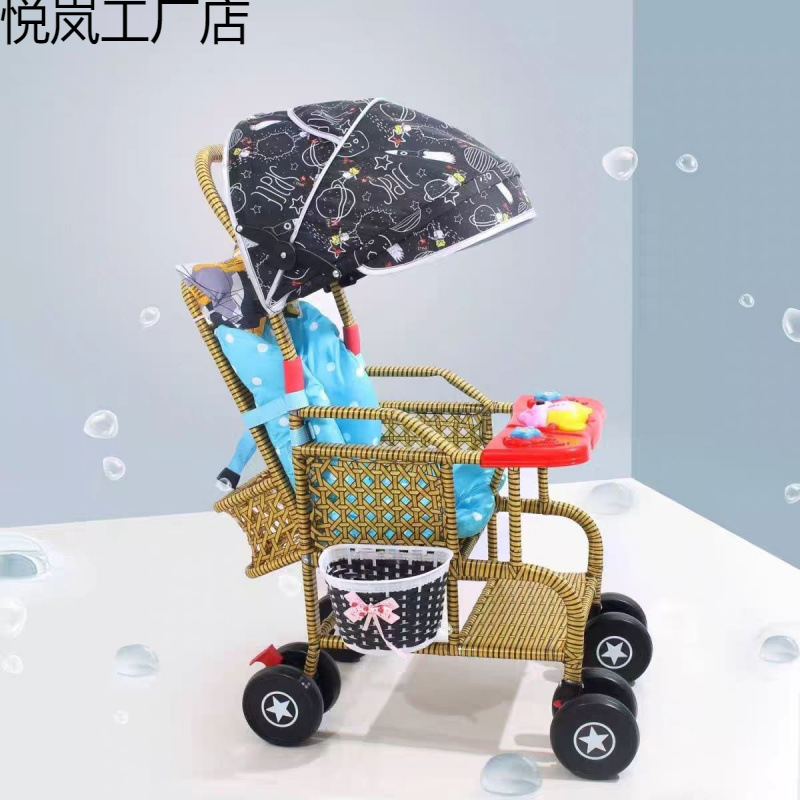 籐製ベビーカー、夏用ベビー籐椅子、ベビーカー、軽量模造竹籐、赤ちゃんは籐で座ったり横になったりでき、安全で快適で軽いです。