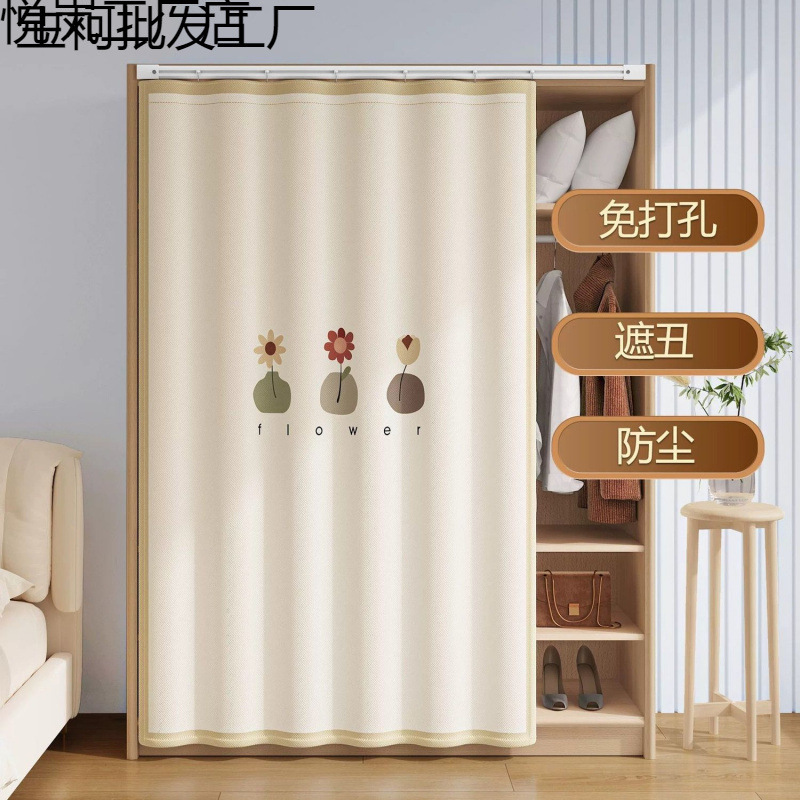 スライドトラックワードローブカーテン、パンチフリードアカーテン、ベルクロ収納ラック、本棚、靴ラック、ダストカーテン