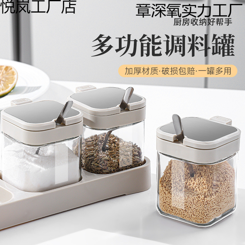 新しい調味料ボックスセット家庭用キッチン調味料ボトル収納ボックス蓋付き密封調味料瓶調味料ボックス