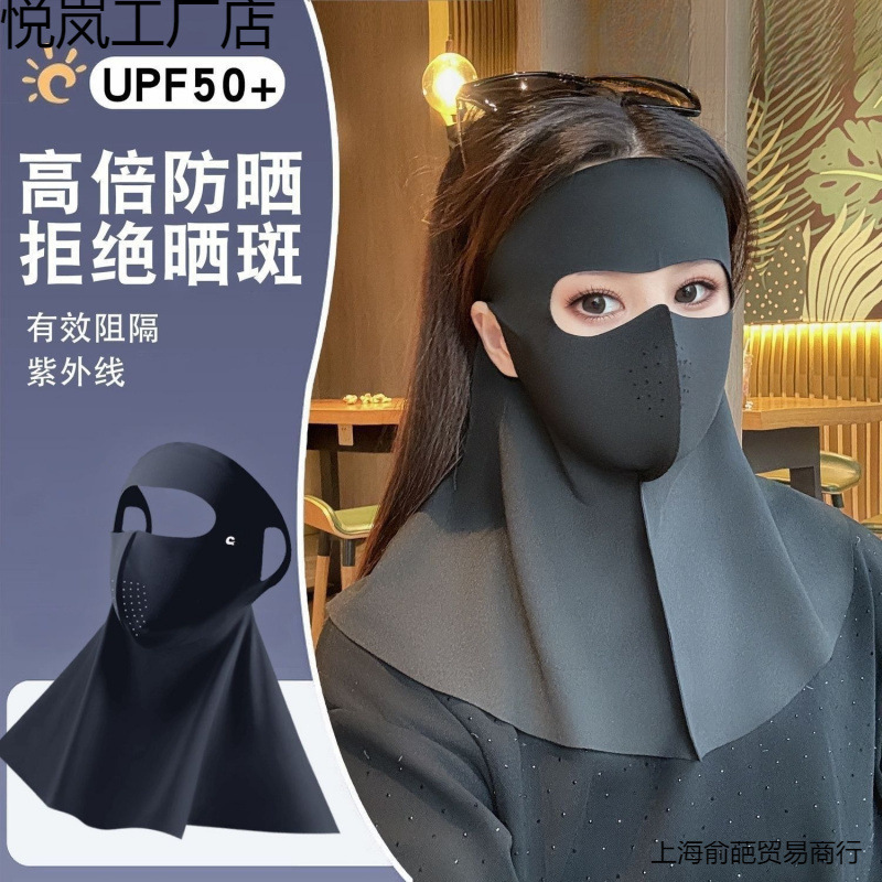 日焼け止めフルフェイスシームレスネックマスクフェイスマスク通気性額一体型夏アイスシルクマスク女性用抗紫外線