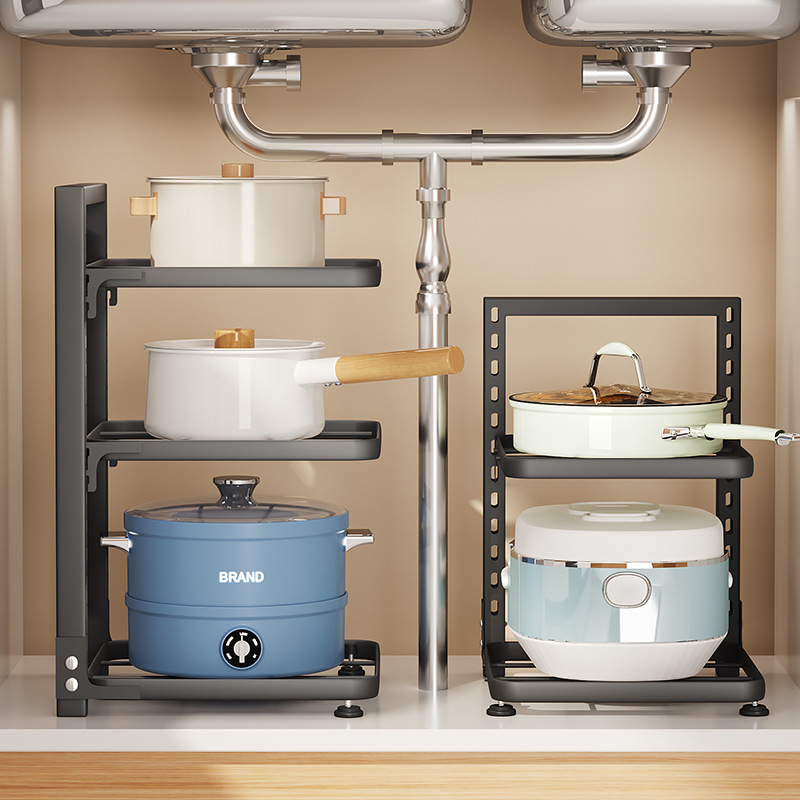 台所の物置棚家庭用多機能キャビネットの下に水槽の鍋があります。