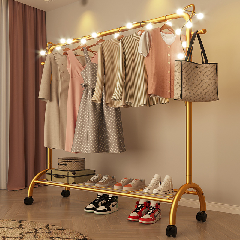 簡易ハンガー床置き多層衣類収納ハンガーダブルポール寝室部屋寮衣類ハンガー太く
