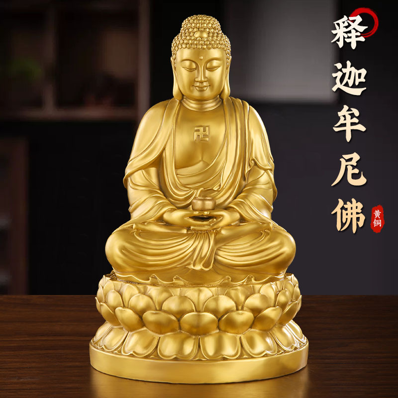 銅三聖仏像セットホームリビングルーム釈迦摩尼菩薩仏像置物家庭用真鍮仏像