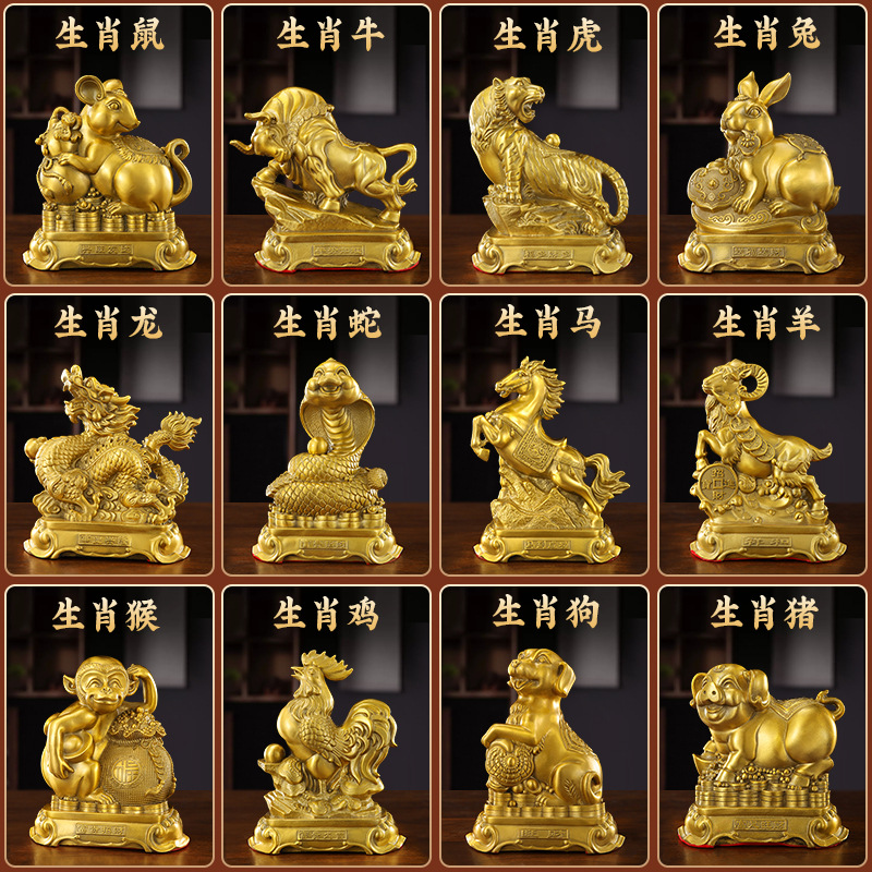 真鍮の十二生肖の置物の家の事務室の銅の置物の銅のネズミの牛の虎のウサギの竜蛇の馬の羊のサルのニワトリの犬のブタ