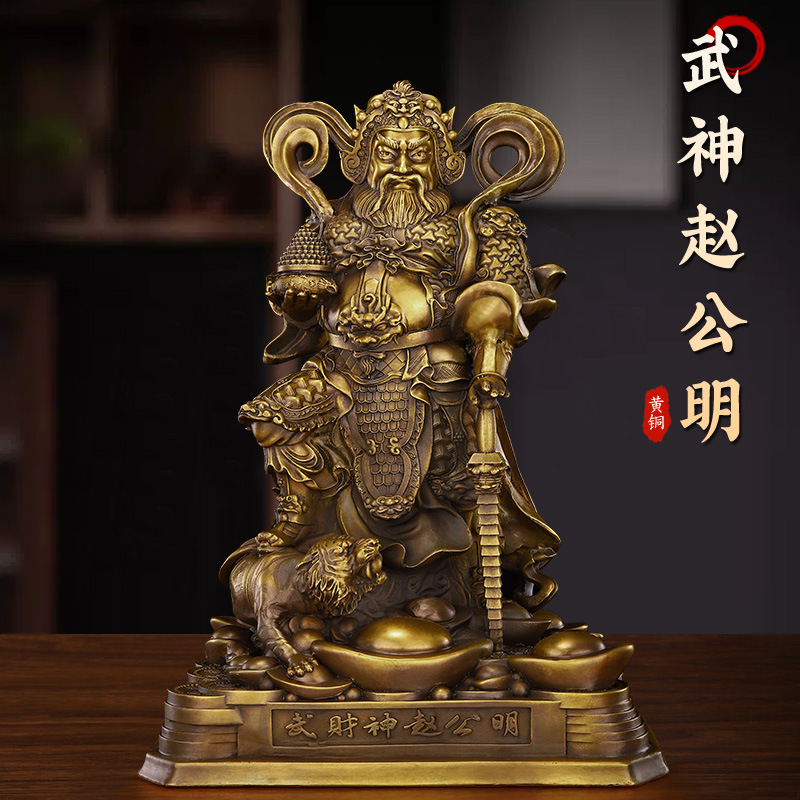 純粋な黄銅の武財神趙公明の家庭用は神像の店の事務室のデスクトップの置物のメーカーの卸売りに供えます。