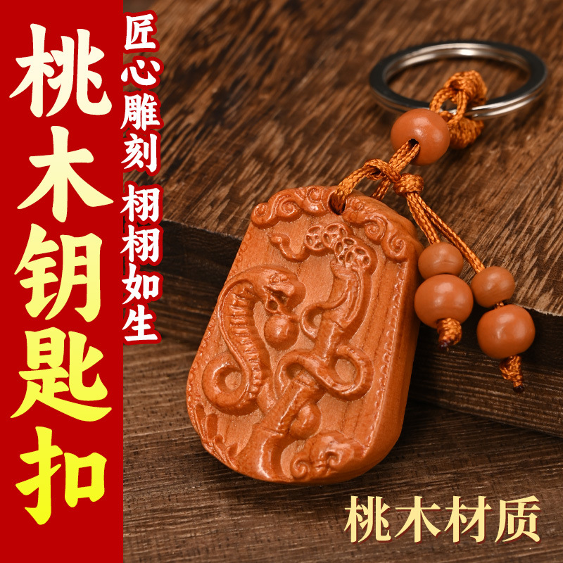 ピーチウッド十二支キーホルダーネックレスペンダントペンダントねずみ牛虎ウサギドラゴンヘビ馬羊猿鶏犬豚