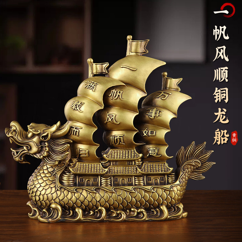 純粋な黄銅の順風順竜船の置物銅の蛇口の船のデスクトップの客間の事務室の客間は贈り物をします。