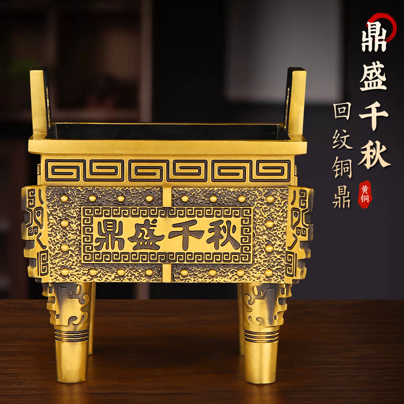 真鍮四方銅鼎盛千秋家庭用開業ホームオフィス玄関銅鼎着地置物