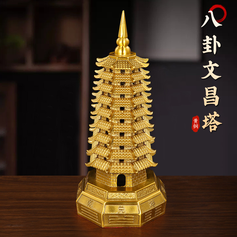 純粋な黄銅の八卦の文昌塔の9階の十三階の金榜は塔の事務室の机の書斎の家庭の置物を学びます。
