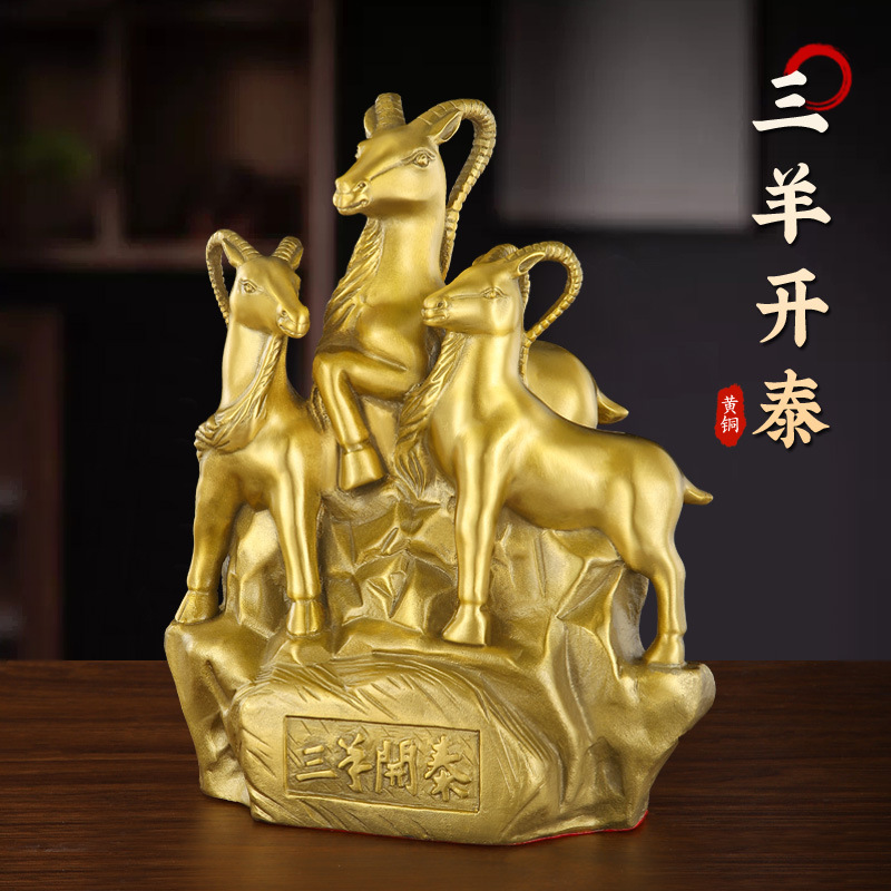 三羊開泰黄銅羊置物事務室三陽開泰家居アクセサリー銅羊金属工芸品卸売り