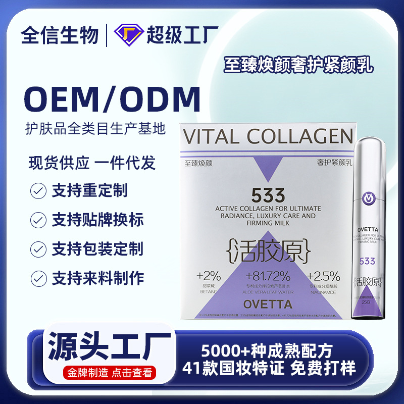 カスタマイズされた活コラーゲンは顔の精華乳を引き締めて潤いを与えます。肌の色を明るくします。