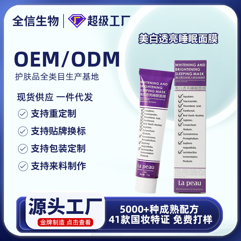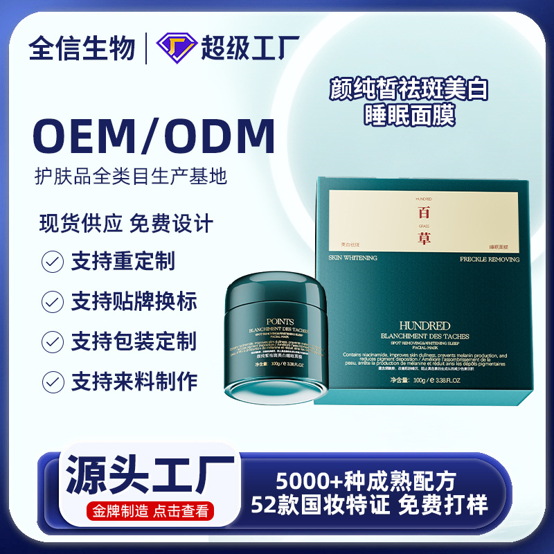 カスタマイズされた美白・そばかす除去スリーピングマスク、ドロップシッピング適用修復マスク、OEM洗い流さない泥マスク、OEMブランド