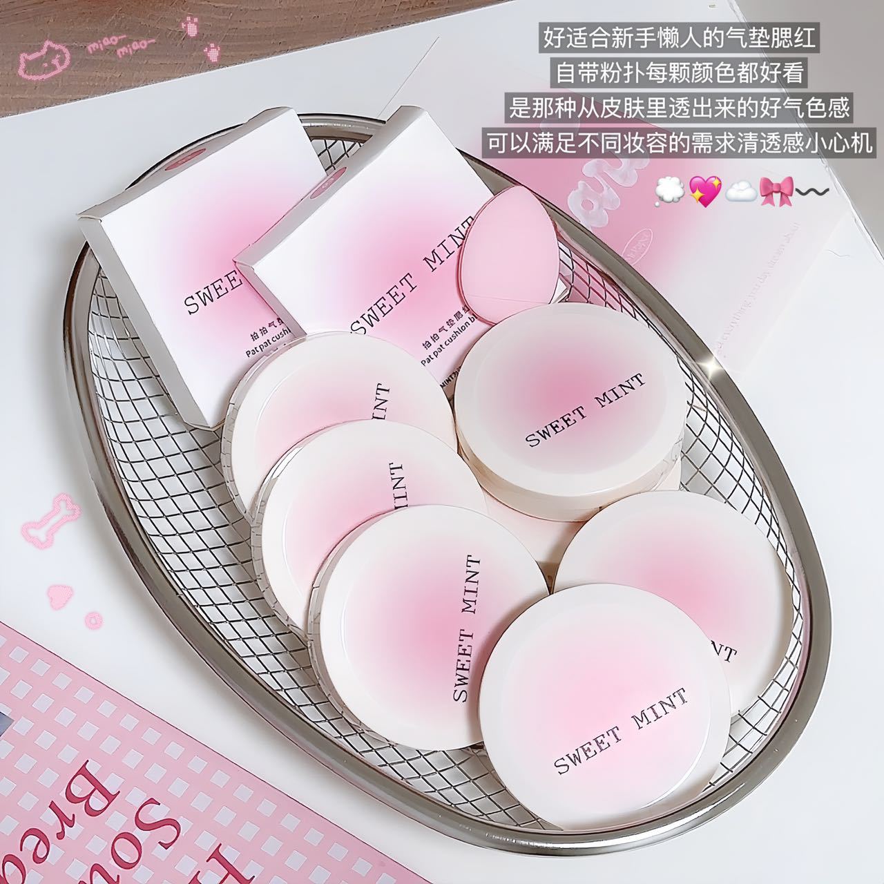 スイートミントパットエアクッションリキッドブラッシュは、明るく輪郭を整え、自然にフィットし、メイクを長持ちさせます。