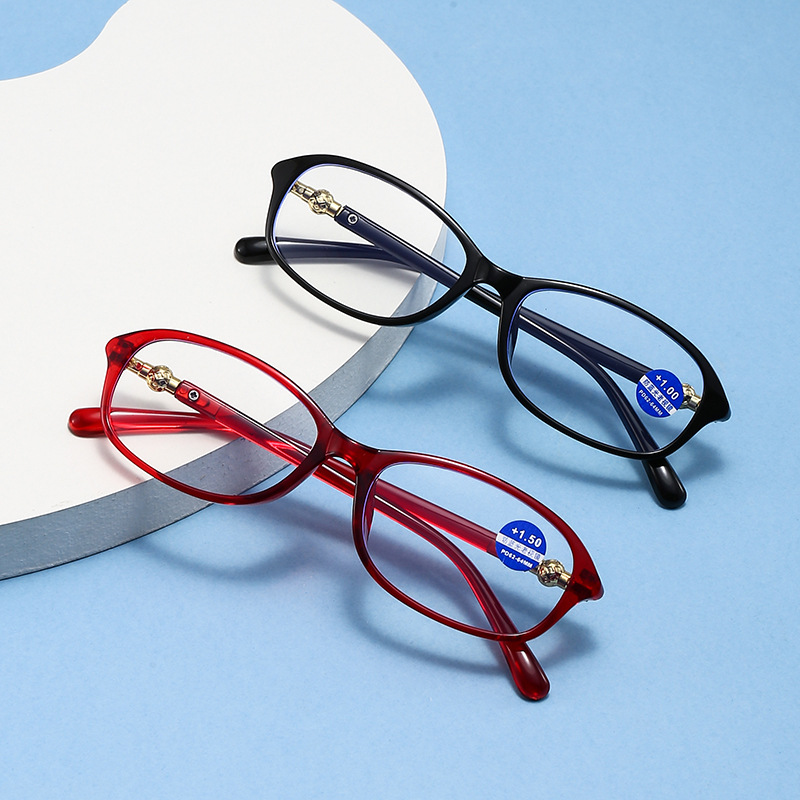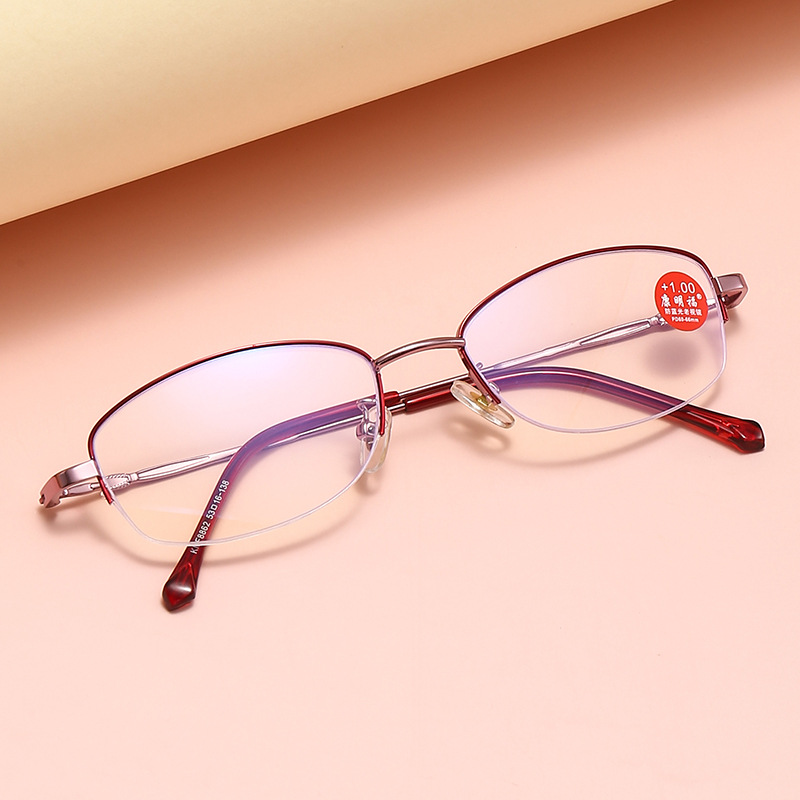 ファッションの老眼鏡の女性の潮流は明らかに若くて、青い光の高清の金属の老眼鏡のお母さんのタイプの遠視の鏡の赤い色を防ぎます。