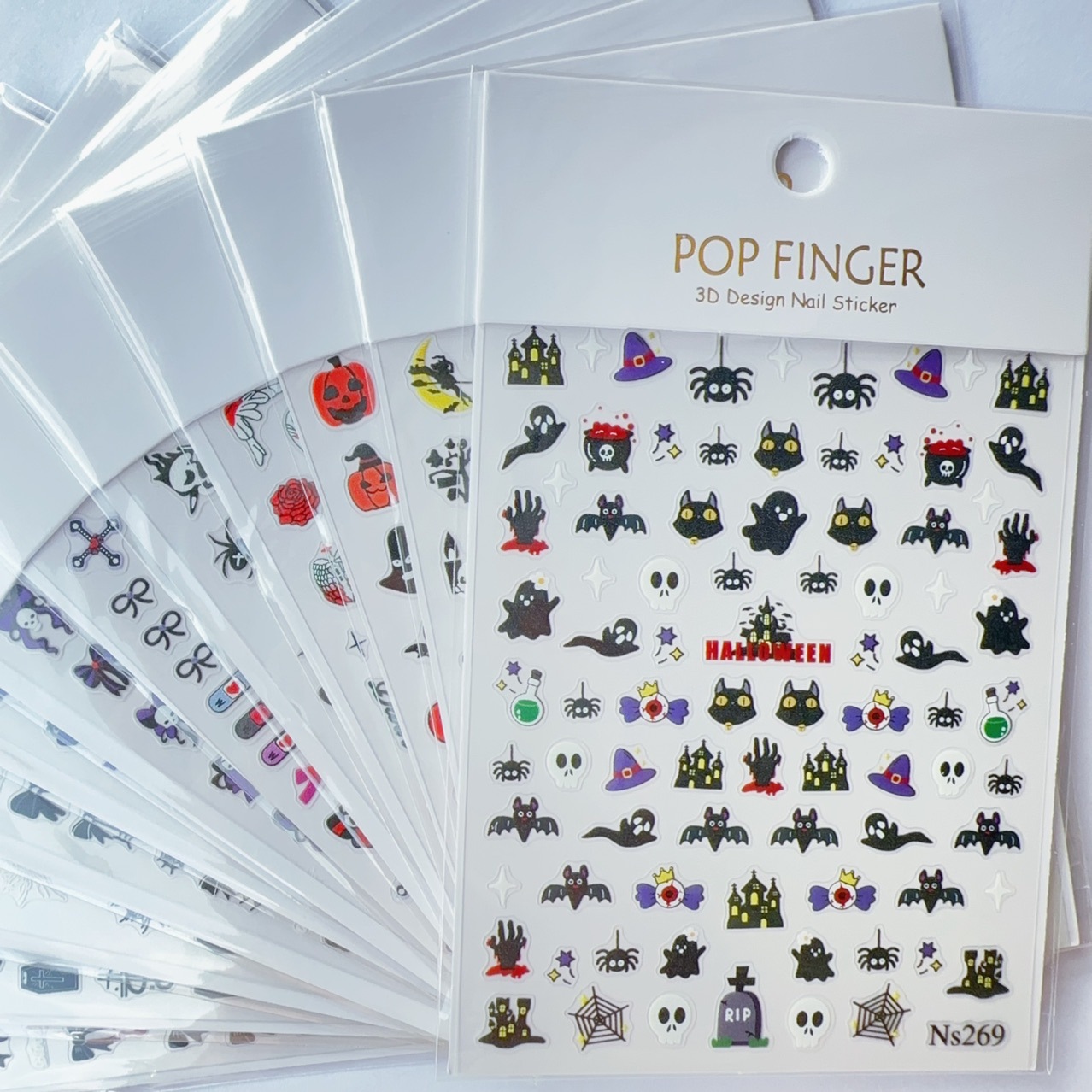 2025 新しい新技術フラット粘着ハロウィンインターネット有名人スタイルマニキュアカボチャクモスカルネイルステッカー