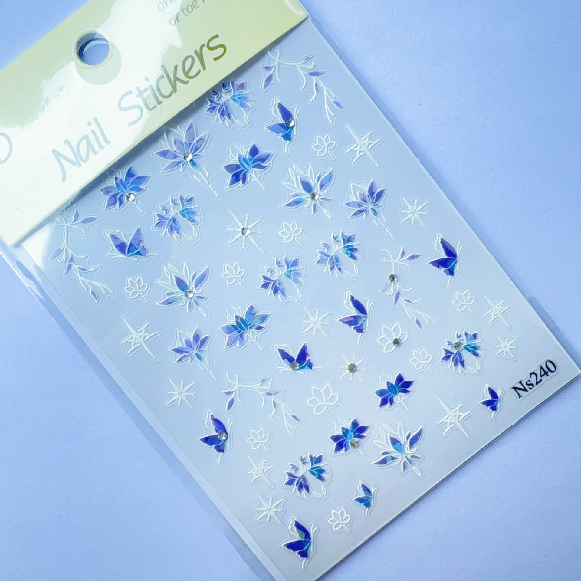 新しいクリスタルダイヤモンドブルーロータスバタフライ立体ネイルアートステッカーエンボス加工粘着ネイル