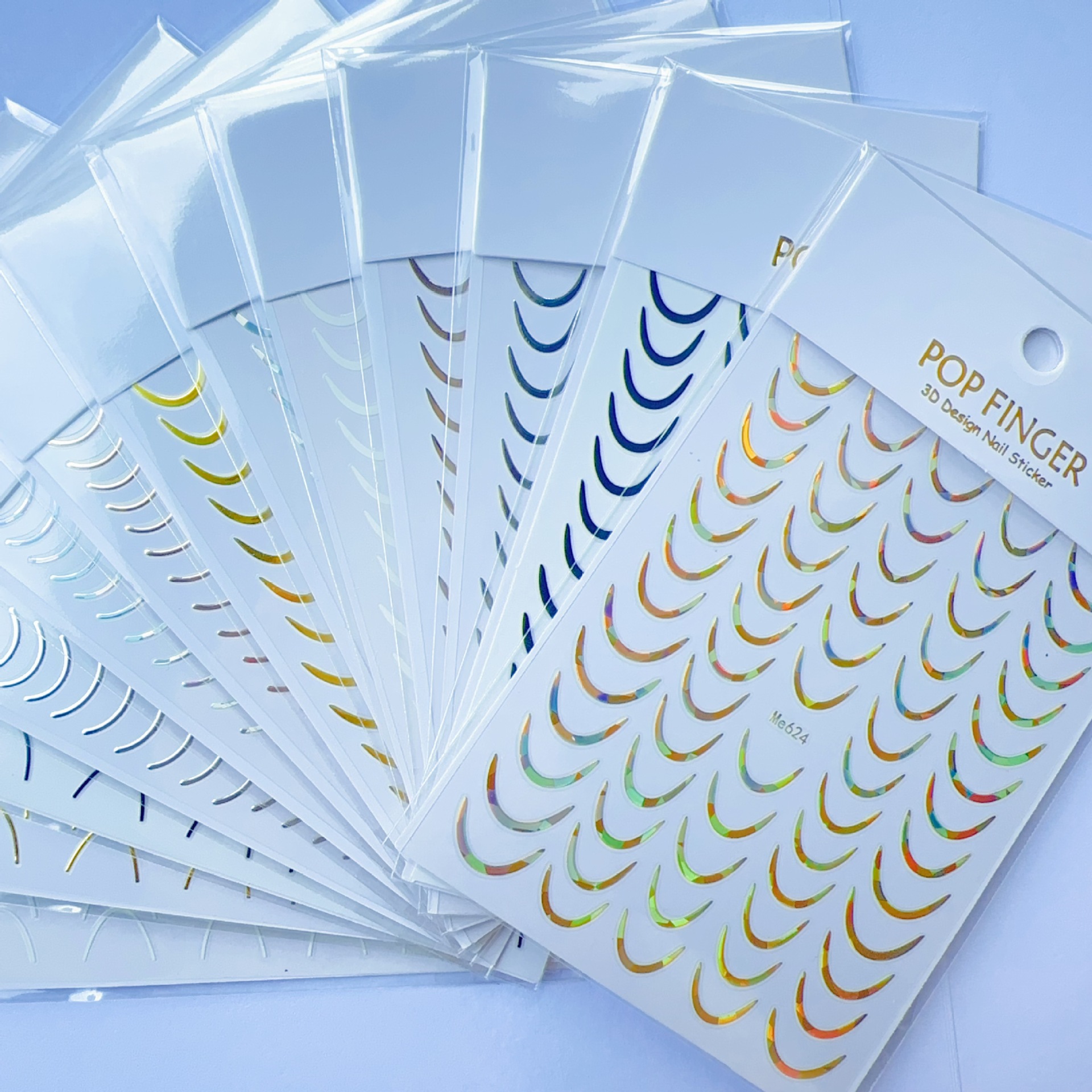 新しい国境を越えた電子商取引小紅書人気ラインフレンチマニキュアマルチカラーホットスタンピングカーブネイルデカールステッカー