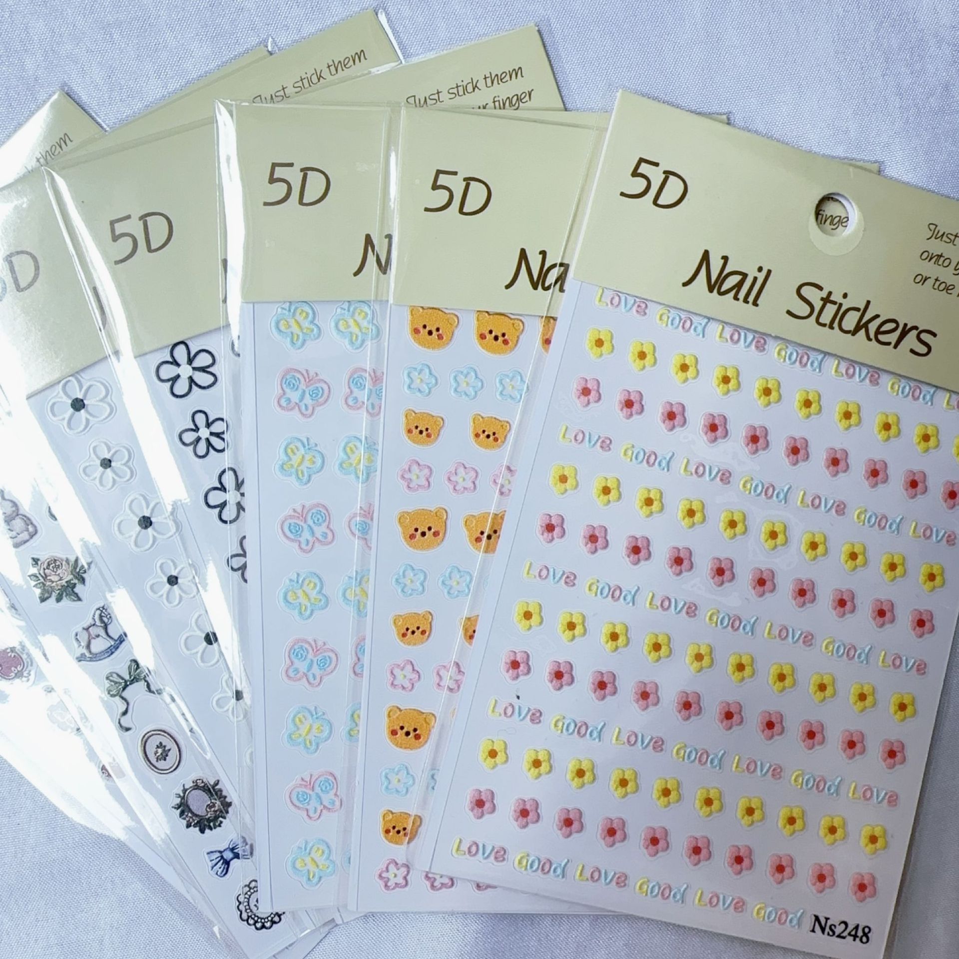 新しい 5D エンボスネイルステッカー黒と白のウェアラブルネイル中空カラフルな花かわいいクマ diy 立体デカール