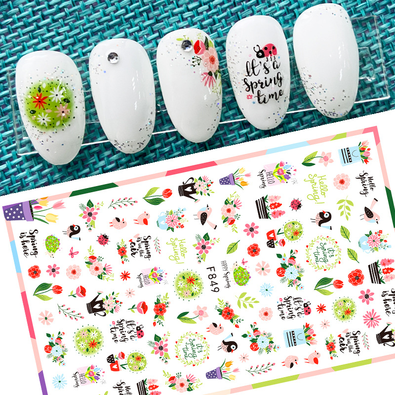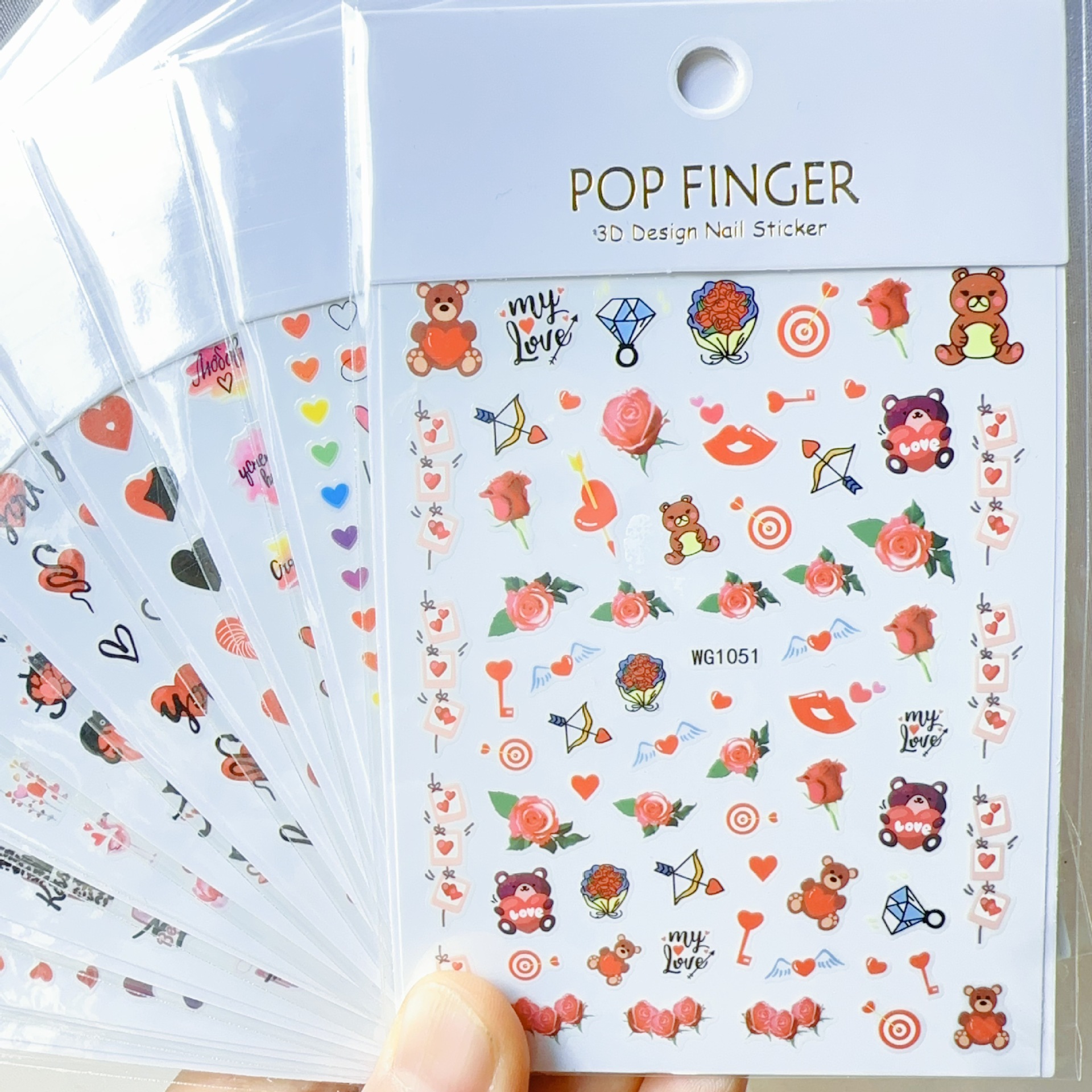 メーカー現物直販2025新型バレンタインデーネイルアート紙薔薇七彩愛猫紅唇爪貼り10種類