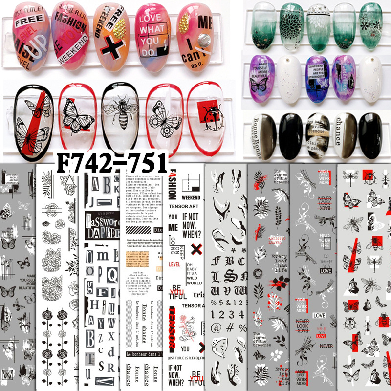 国境を越えた電気商復古新聞文字ネイルアート白黒系愛星プリントアルファベット爪シールアクセサリー