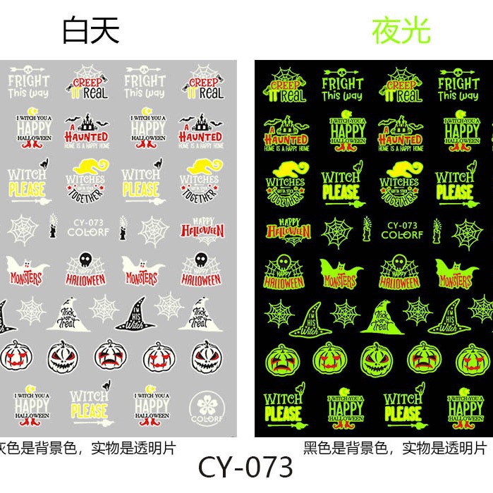 新品夜光ハロウィーン爪ステッカースカルネイルアートスパイダー夜光ハロウィーン爪ステッカーCY073-081