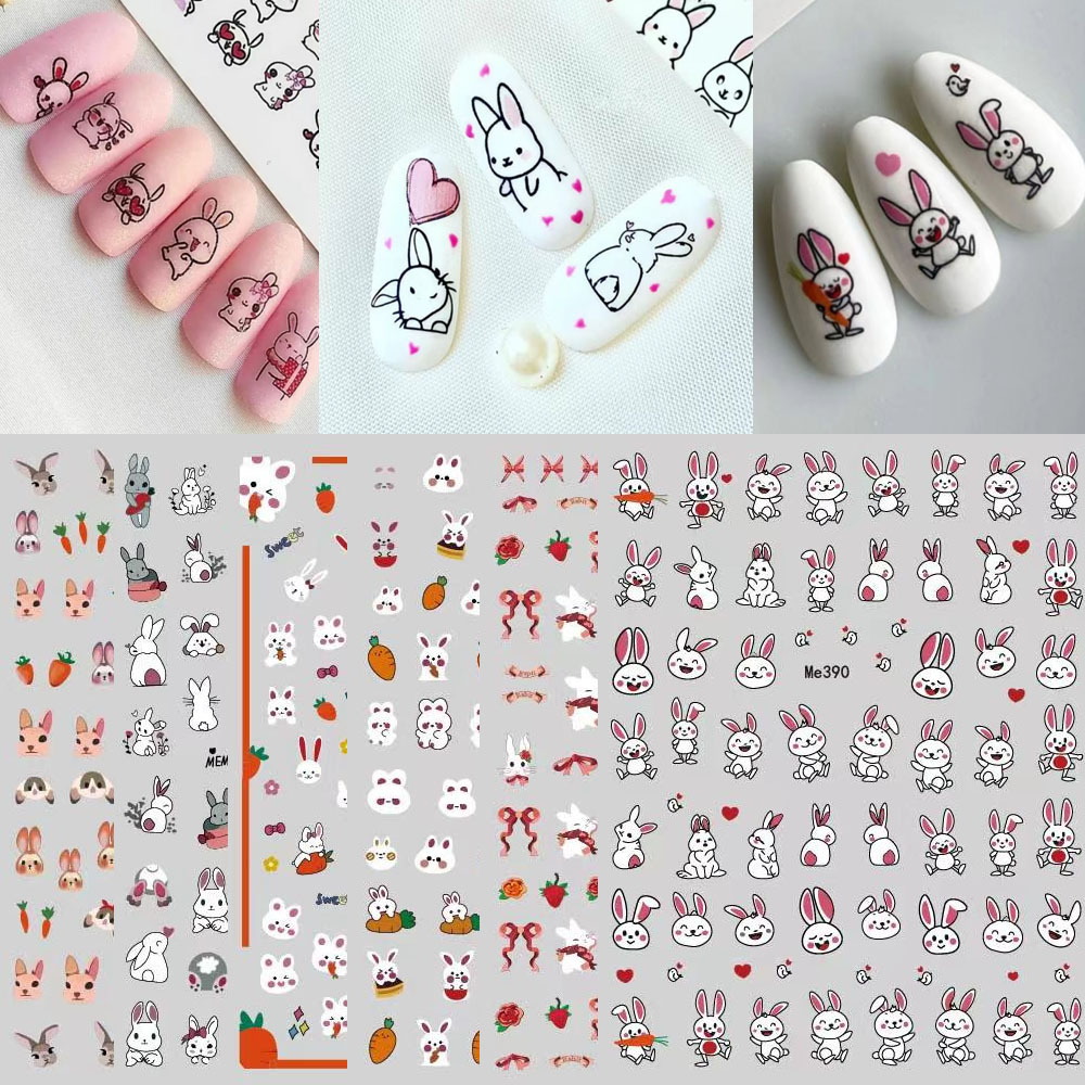 漫画のウサギのネイルステッカーかわいい漫画のウサギのロコウサギの子供のウサギのネイルステッカーMe384-394