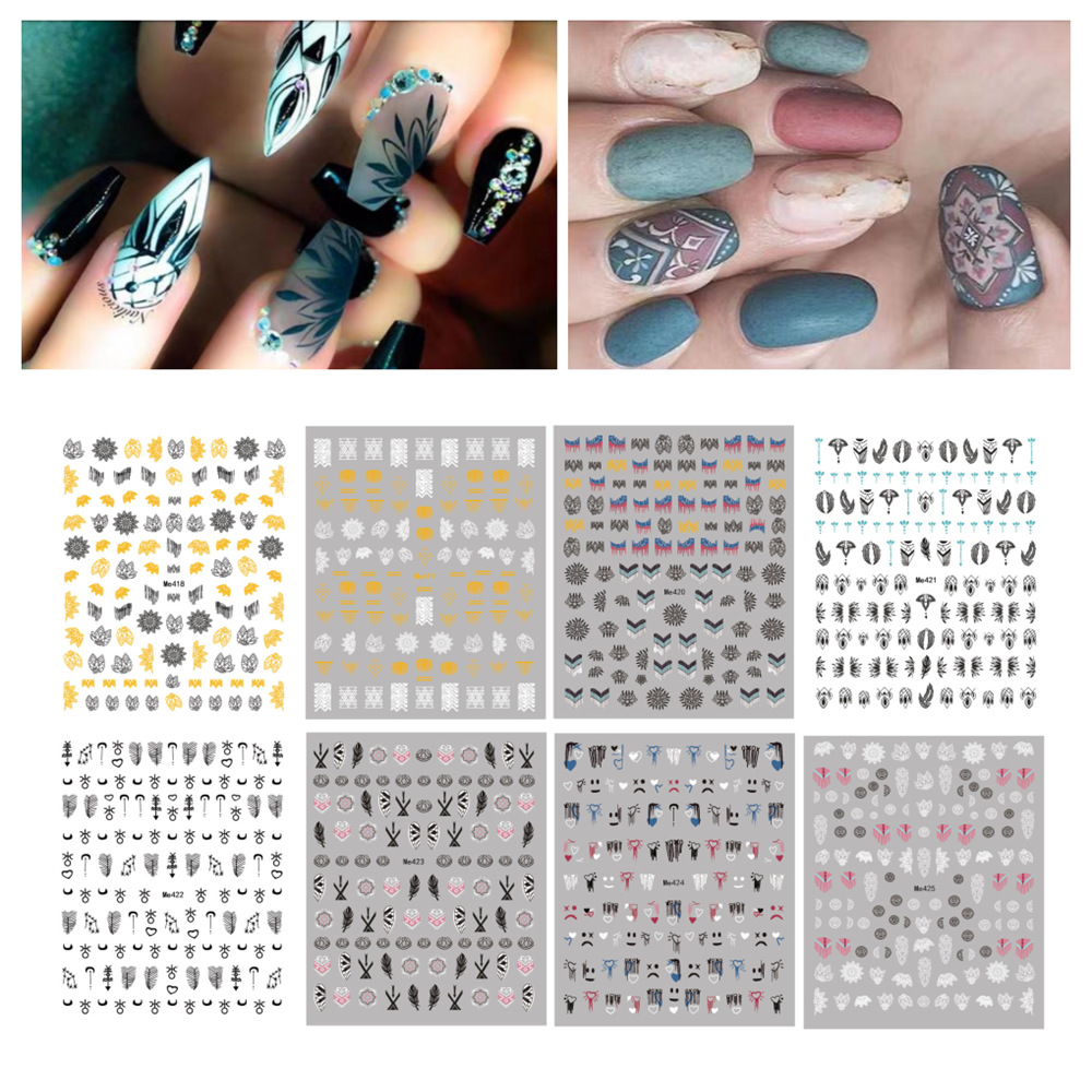 魚骨ネイルシール国境を越えた電気商箔押し線羽表情ネイルシールMe418-425