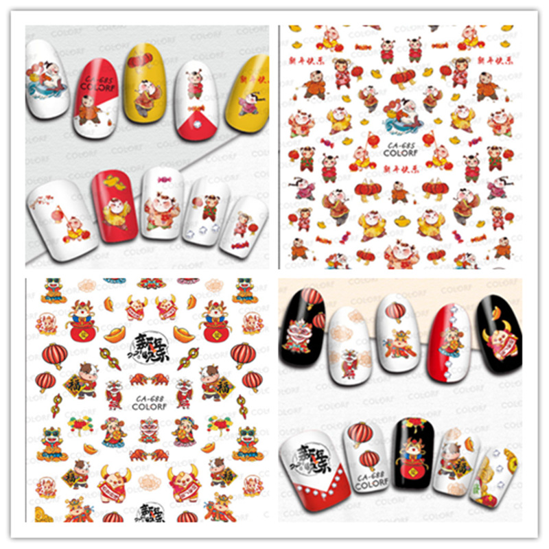 新年ネイルアートデカールバックINS小紅本ネット紅中国年新年ネイルアートデカールCA682-697