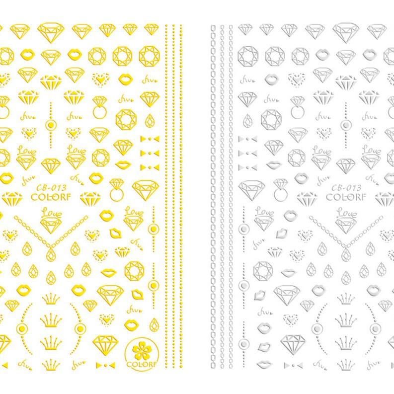 ネイルシール3Dバックゴム爪貼り金銀白黒ネイルシールメーカー現物CB094-098