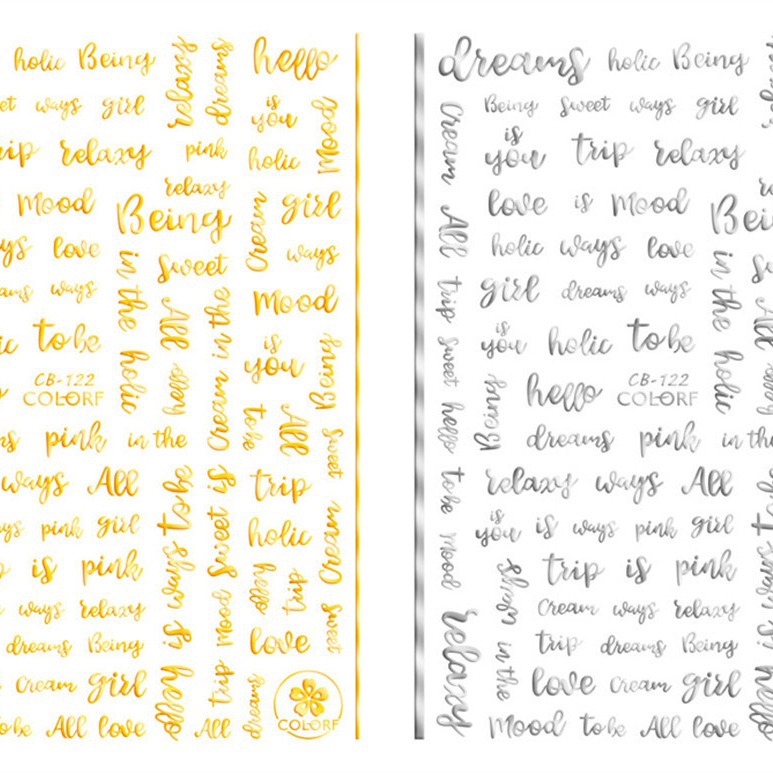 アルファベットネイルデカール3d爪ステッカー金と銀の白黒アルファベットネイルデカールCB122-131シリーズ