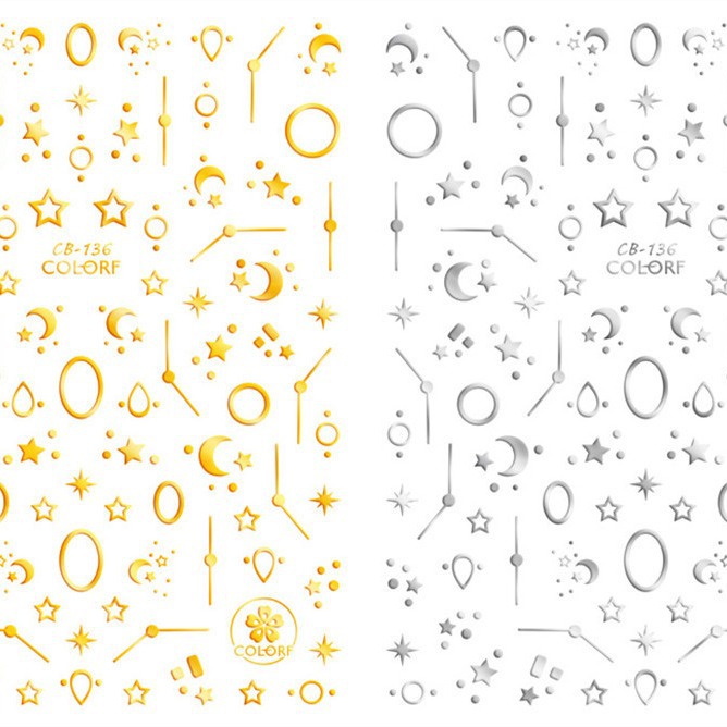 新品星月ネイルシール3Dバックゴム金銀金属白黒星月ネイルシールCB132-141