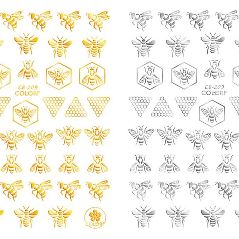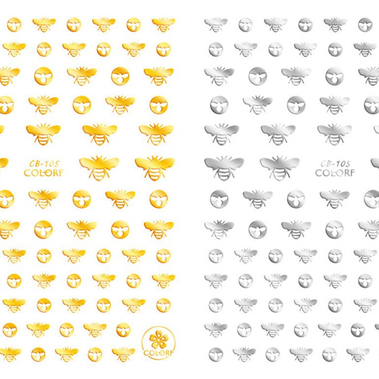 ミツバチのネイルシール3クロスボーダー電気商D金銀白黒ミツバチのネイルシールCB104-112