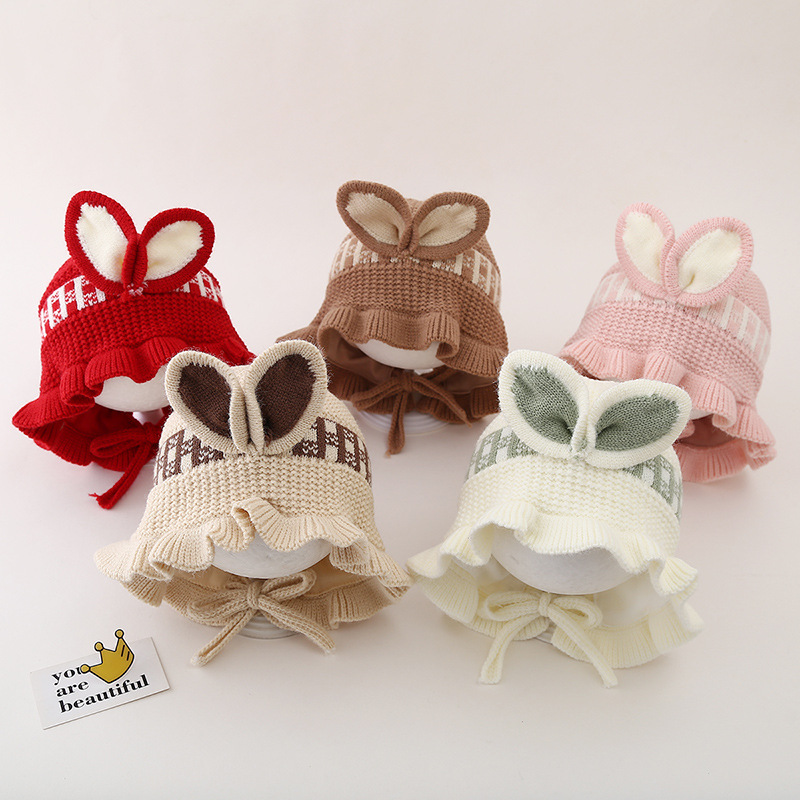女の赤ちゃんのレースのウサギの耳の帽子は冬の新型のかわいい防風の耳の女性の赤ちゃんの王女の帽子の萌えを持ちます。