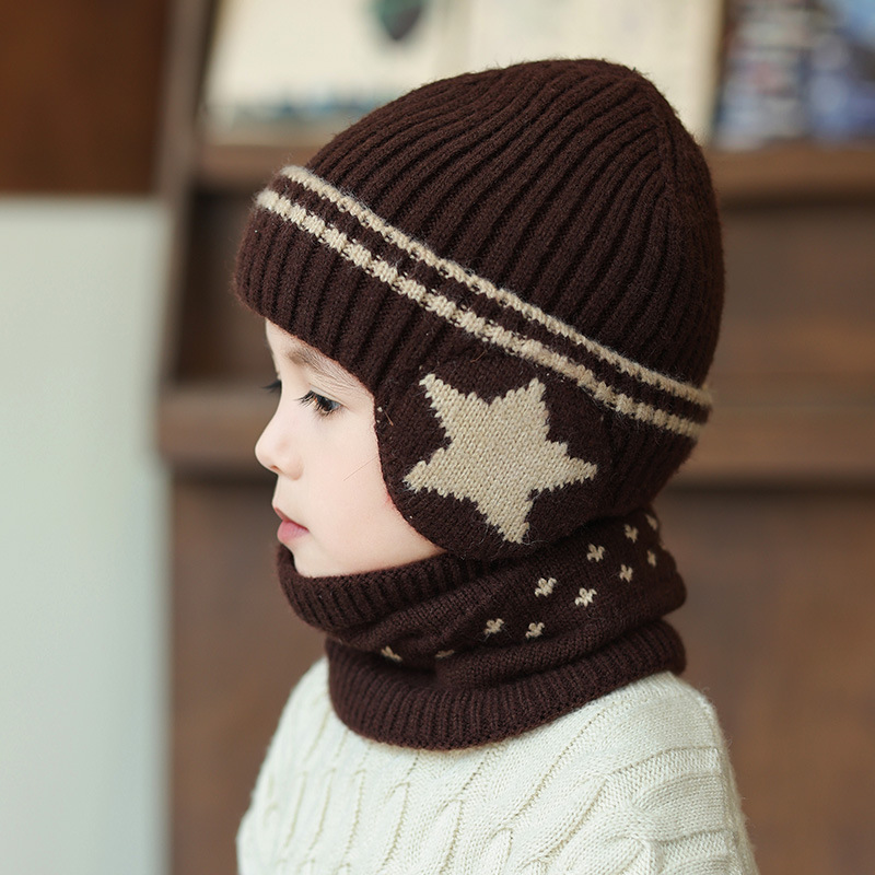立体アニメ子供帽子マフラー二点セット秋冬子供保温毛糸帽子マフラーセット1-3歳