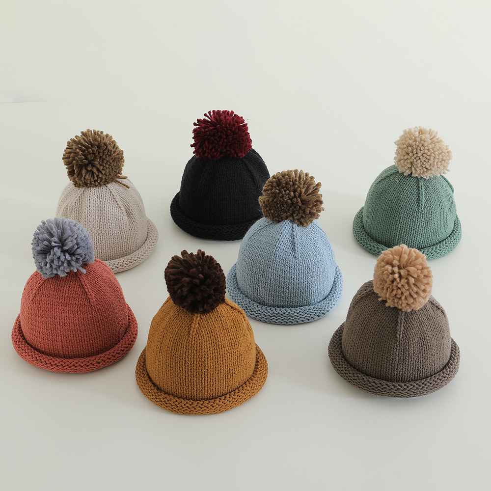 韓国風の子供の毛玉ニット帽秋冬の赤ちゃんの毛糸帽子